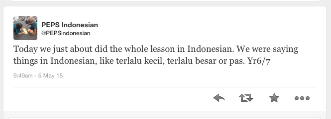 Then after school Wednesday, I watched a webinar from the TPRS Publishing website which led to my second realisation thanks to Carol Gaab. The beauty of this webinar is that it is specifically for elementary language teachers. I have seen it several times and each time I watch it I learn something incredibly useful. I was delighted this time when Carol outlined several techniques she uses to minimise students calling out during PQA. She recommends asking students to do a given action if they agreed/disagree with a statement, eg berdiri kalau suka arbei, angkat tangan kalau tidak punya anjing. Once again, I couldn’t wait to try this idea and again, it worked so well and made such a difference.