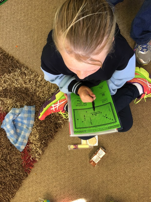 After school we stood around chatting & sharing more games with each other. Anne had a few number games which we intend to use soon. One was writing a list of numbers on the board: