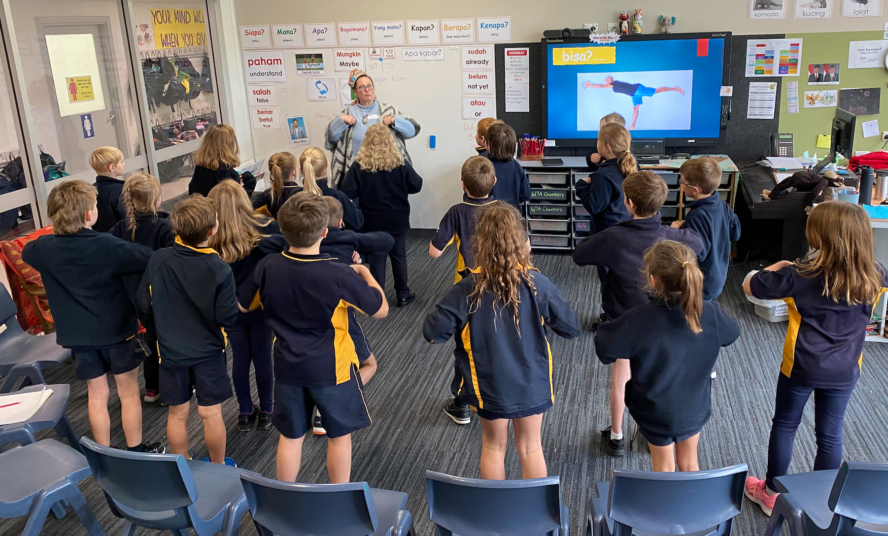 Bu Heather spent Friday in my classroom last week. Friday is a great day for visitors as I teach a full day of Receptions  to year 7’s however it is also the one day in my working week that I have no non-contact, two yard duties and my year 2/3 lesson is held in an adjacent classroom to allow the online instrumental music program access to the required hardware currently situated in the Indonesian language room.