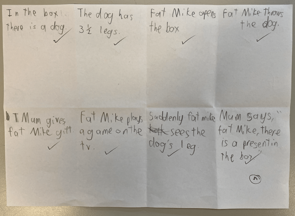 When all sentences had been translated, I asked students to turn their sheet over. Depending on the amount of time left in the lesson, I asked for a number of the English sentences to be translated back into Indonesian and again one sentence per square. The choice of the sentences was entirely up to each individual student. Finally, students had to number their Indonesian sentences to indicate the order they appear in the storyline. This high achiever translated all sentences back into Indonesian!!