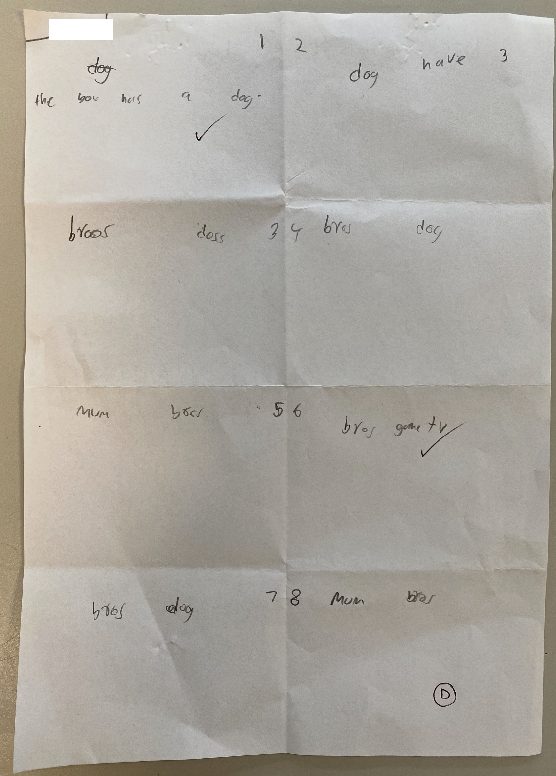 Some students struggled with both tasks and after looking at their work, I believe their struggle is closely linked to poor literacy skills and the low confidence this creates. I did emphasize before and during the task for students not to worry about spelling as you can see by the images above. I hoped that this would help lower anxiety and increase output and for some this really made a difference! For those who did struggle, I asked that they purely translated the single words/phrases they comprehended. Here is an example of work that I gave a D for: