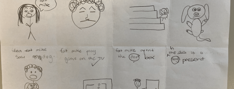 Listen & Draw – Teacher says a sentence from the story, students listen to the sentence and then illustrate the sentence to demonstrate comprehension. While the students are drawing, teacher observes who is drawing and who is not. By asking one of the students who is drawing to translate the sentence into English, provides evidence that the sentence was comprehended successfully while also providing a comprehension check for those who had yet to begin drawing.