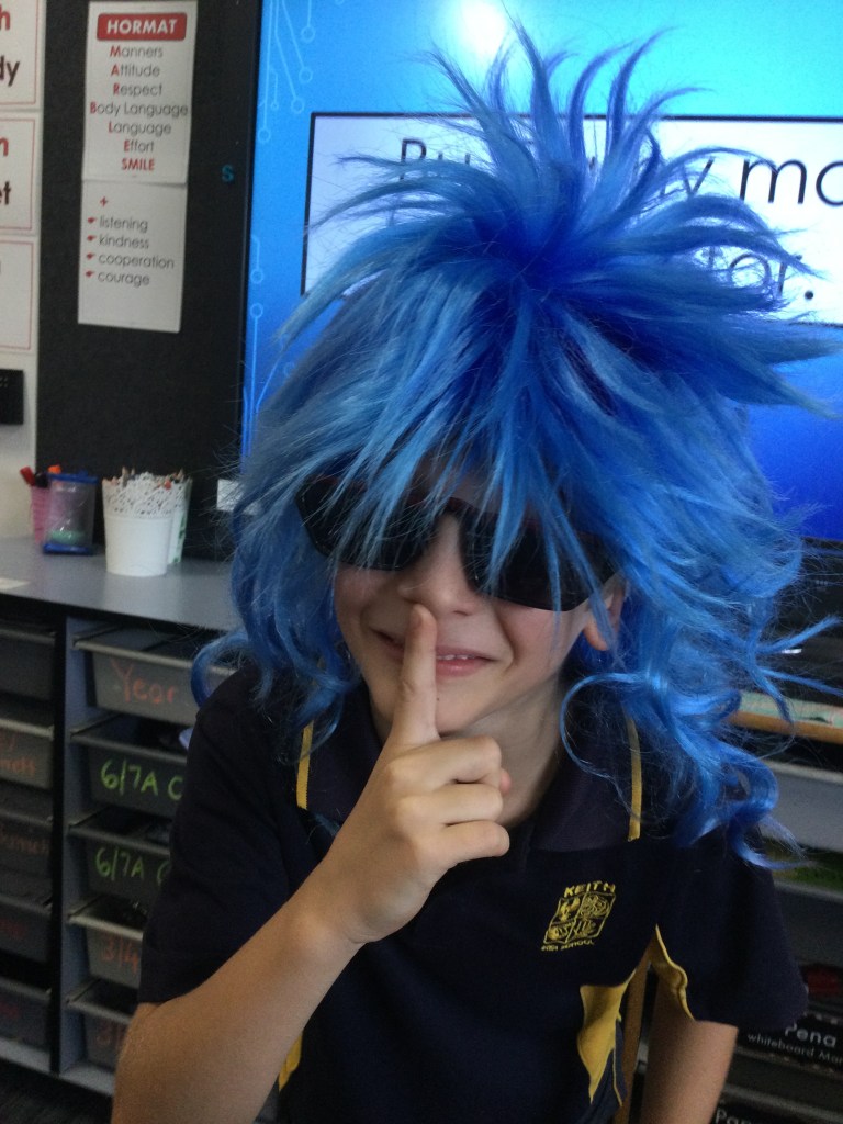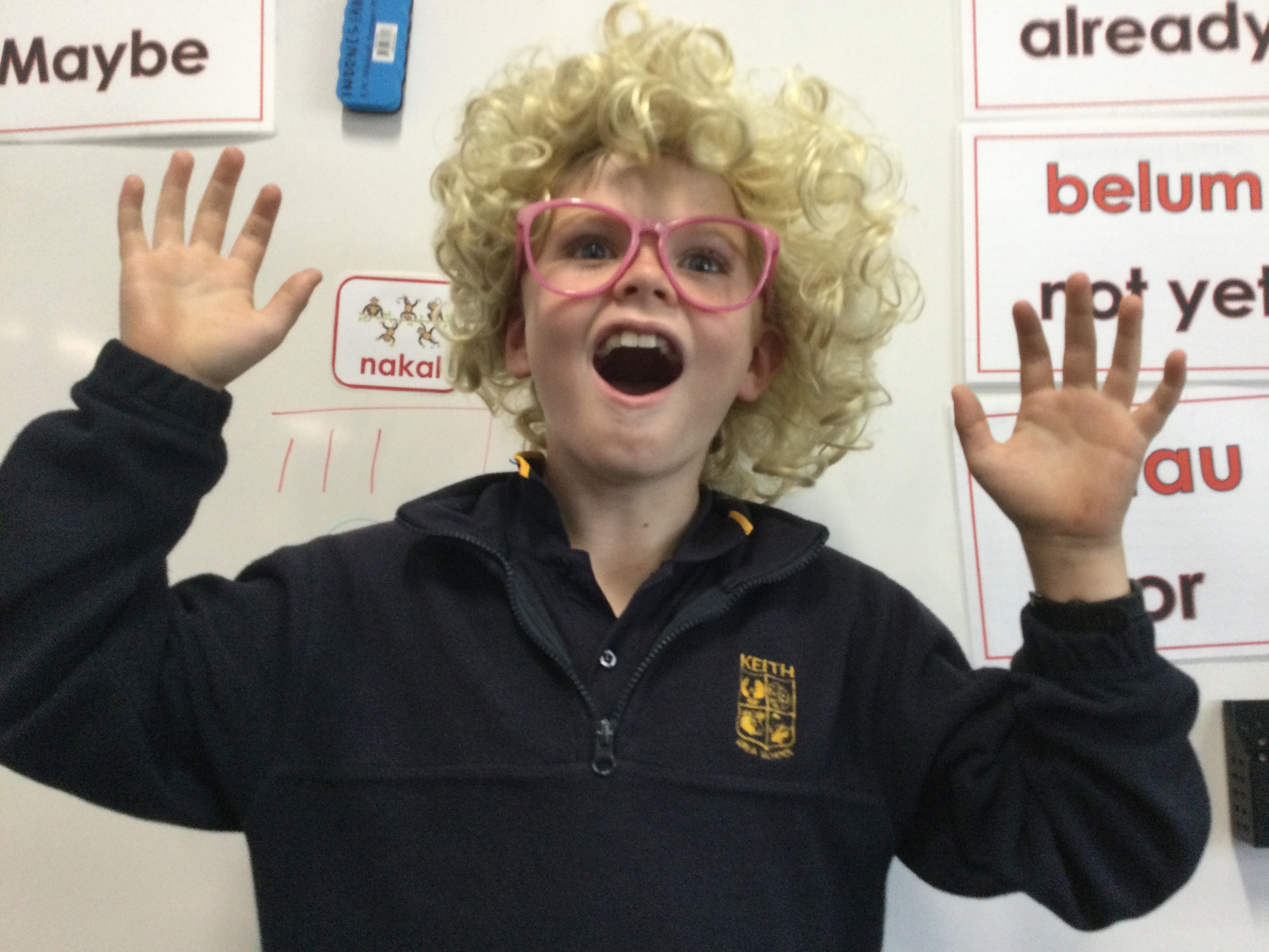 In term 2, the next story middle primary did was the Tutup Pintu story. The students absolutely loved acting with the wigs my daughter gave me. Acting out the story is enjoyable as it not only provides the students with the opportunity to create their own class version but also gives the more outgoing students a chance to be outrageous which is extremely entertaining. In fact, being entertaining is one of my criteria that any student auditioning must demonstrate. Other criteria include following the storyline exactly as it is determined by the class and only speaking when your character has a line. Here are some of my amazing actors: