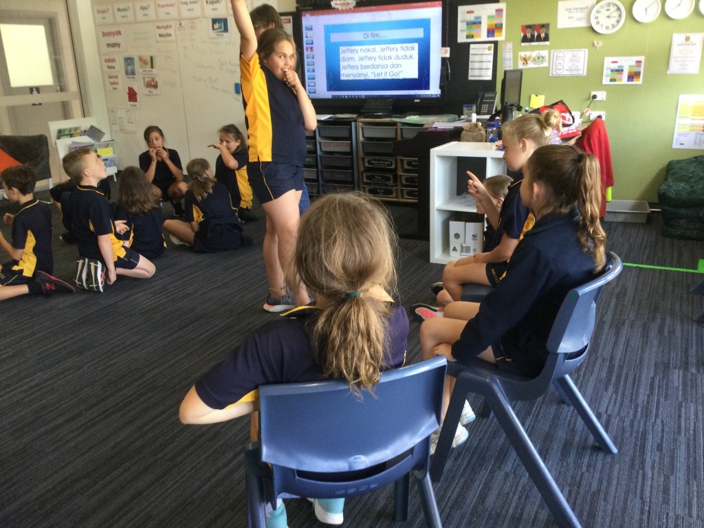 In first term, I did the ‘Murid Nakal’ story with middle primary. I absolutely love this story – great for acting and also perfect for reviewing behaviour management structures in the target language! I did change the ending this year because being at a new school and not knowing the staff or community, wanted to avoid recrimination for using a story that includes smacking! My 2021 version changed the hitting to push ups which worked but was nowhere near as funny! Here are some pictures of a lesson where we used Martina’s freeze frame idea.