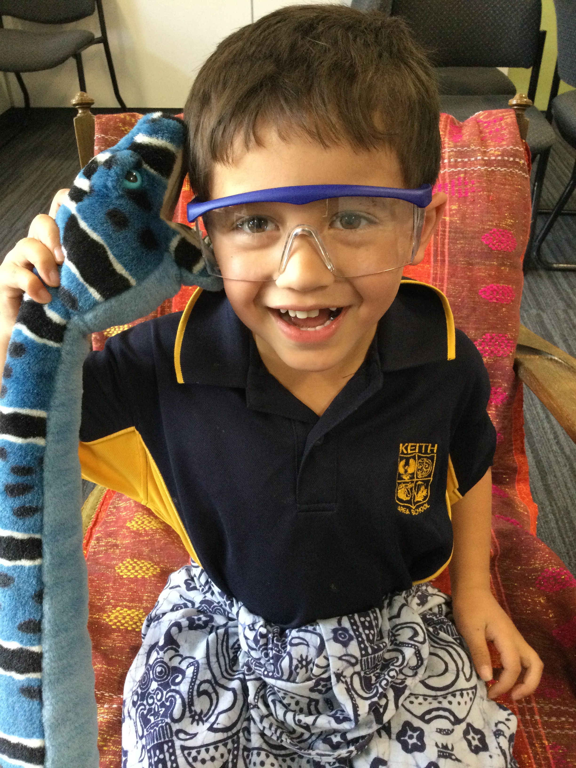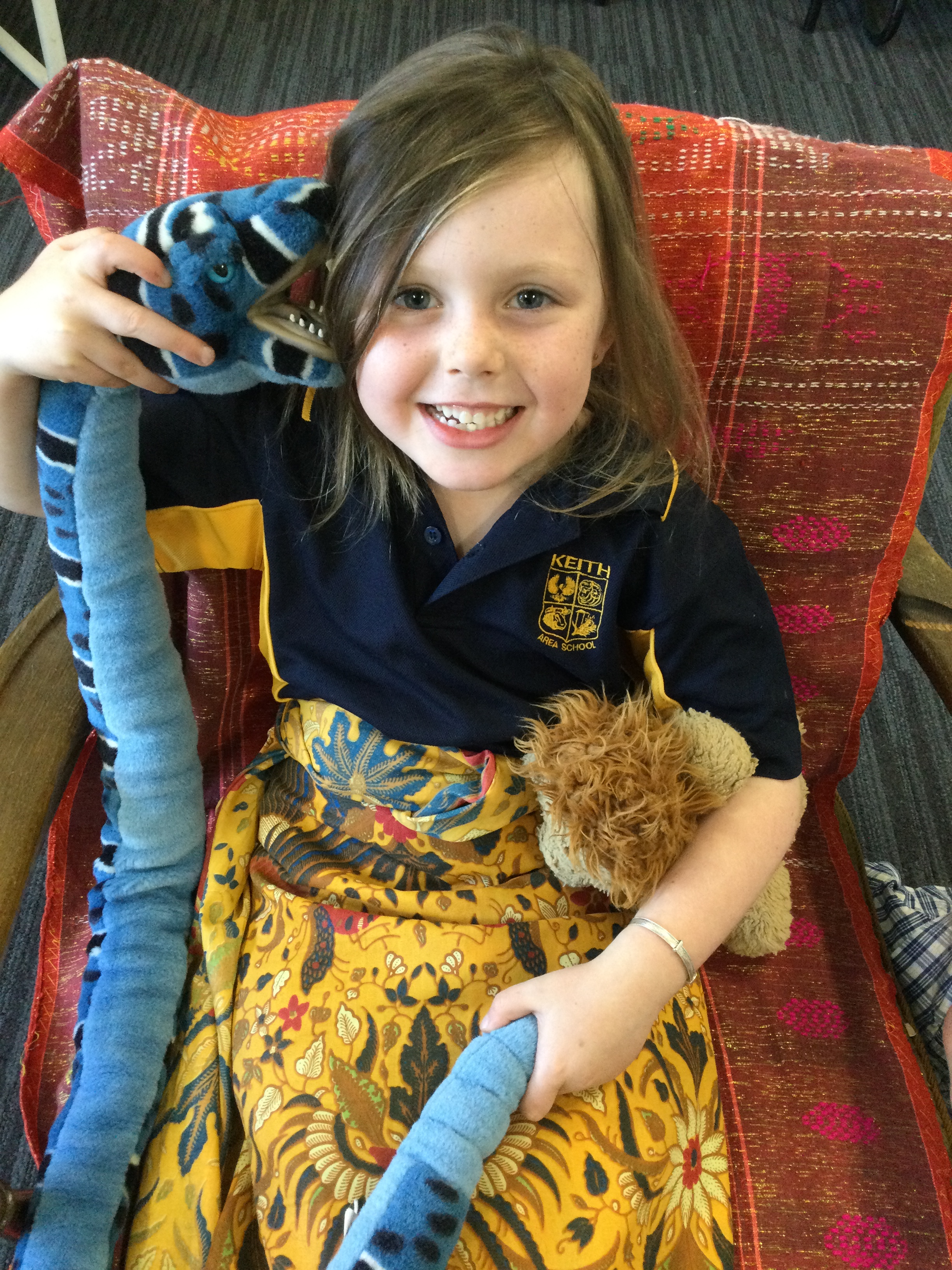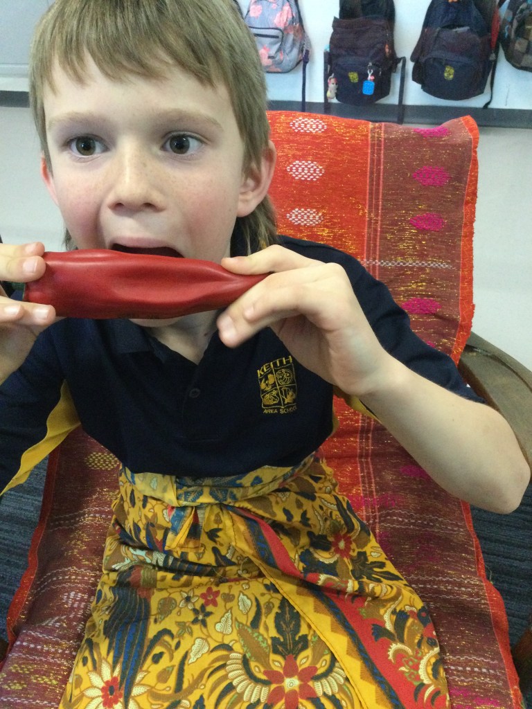 All year levels love KLB! I’ve particularly had success this year with JP classes. It is the perfect vehicle to spotlight one student with quirky questions using target structures. This term they did Catharina’s Ular story, so I enjoyed asking students ‘mau’ sentences incorporating ‘ular’ , ‘atau’ and alternatives based on previous story structures or cognates. I have two snake props, so students could choose between ular besar dan ular cobra! Another question that worked this term was introducing the concept of sarong. This provided discussion about the difference between sarongs for males/females. To begin, I just asked if students , “Mau pakai sarong laki-laki atau sarong perempuan?” After a few weeks, I added the question, “Mau pakai sarong ungu atau sarong kuning?” Great way to limited colours in a meaningful way. I then added the alternative of glasses. “Mau pakai sarong atau kaca mata?” While ‘kaca mata’ is not a cognate, I chose it because not only do I have a selection of different colours but as someone who was embarrassed to wear my glasses at school, I love ways to connect with those students who also wear them!! In the last photo, you’ll notice a Foundation student wearing a sarong and a pair of glasses. He answered my question with, “sarong DAN kaca mata!!” I was thrilled!!