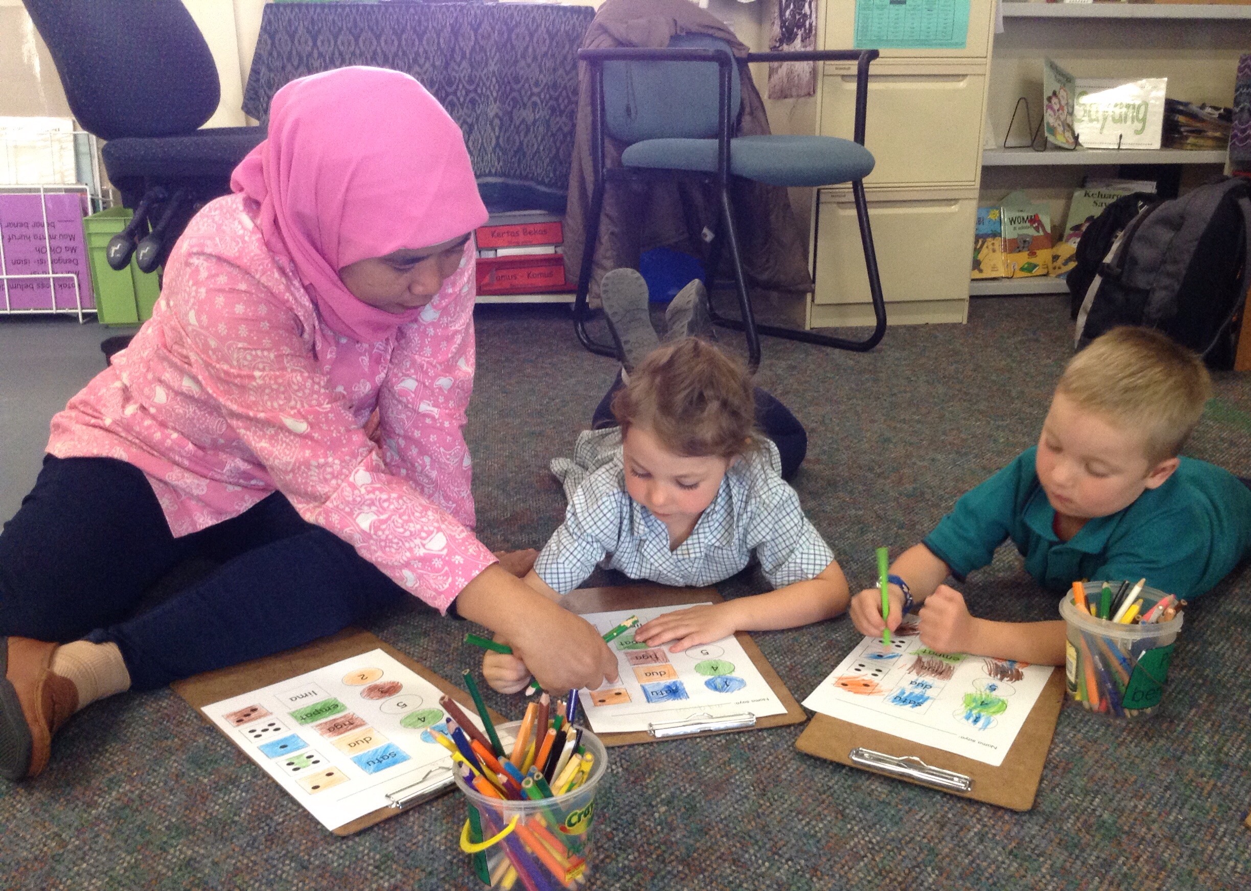 Yesterday they spent quite a bit of time with the Year 5/6’s in Mrs Roberts class to work on ‘biodata’ letters for students in Ibu Elizawati’s class. We looked at one of the ones that Ibu Eliza had brought with her which was all in Indonesian and then looked at the various dot points our students would include in their own biodata.