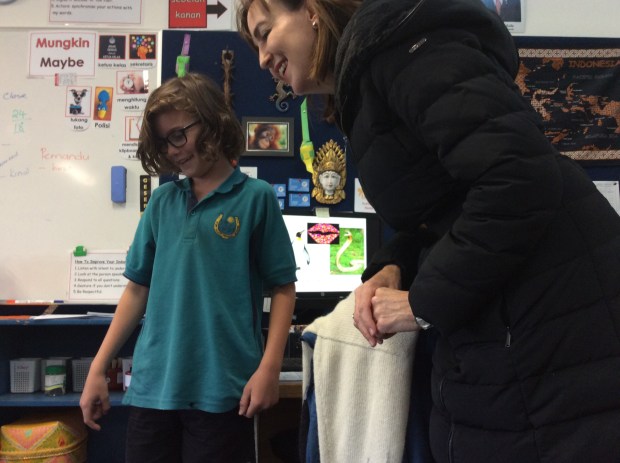 Thursday was her 3rd morning with her students and by then she’d had around 5 hours with them. Her 20 students were a mixture of ages, ranging from year 3-5 (Australian year levels) and interestingly included 4 students who were totally new to Spanish and CI methodology. The identity of the 4 newbies was kept secret until the final debrief session and by that time, observers were totally surprised when their names were revealed! Her student group also covered the typical spectrum of student behaviours and it was so touching watching her developing rapport with the students from each end of this continuum.