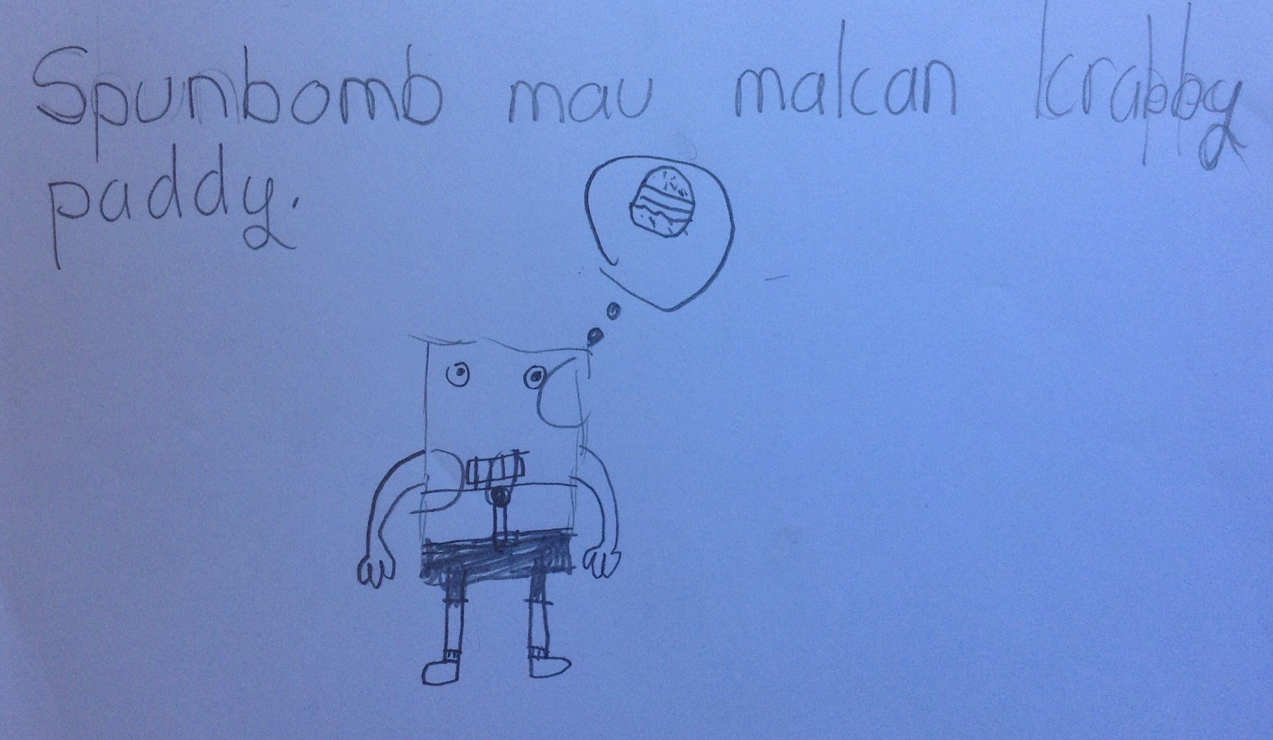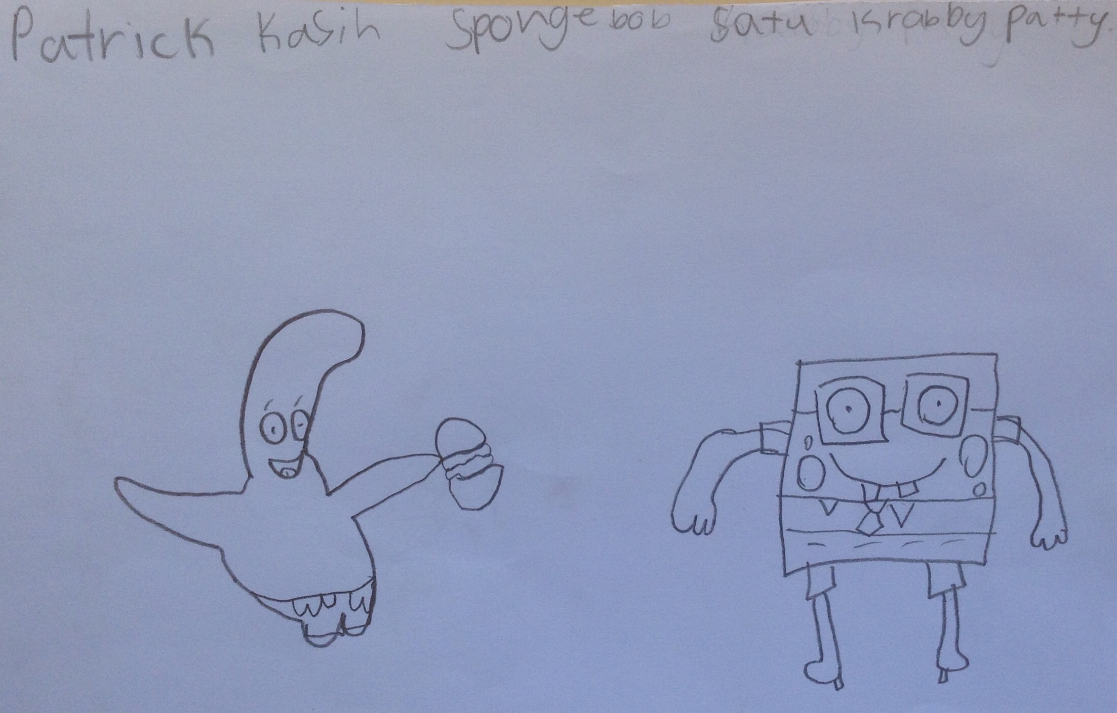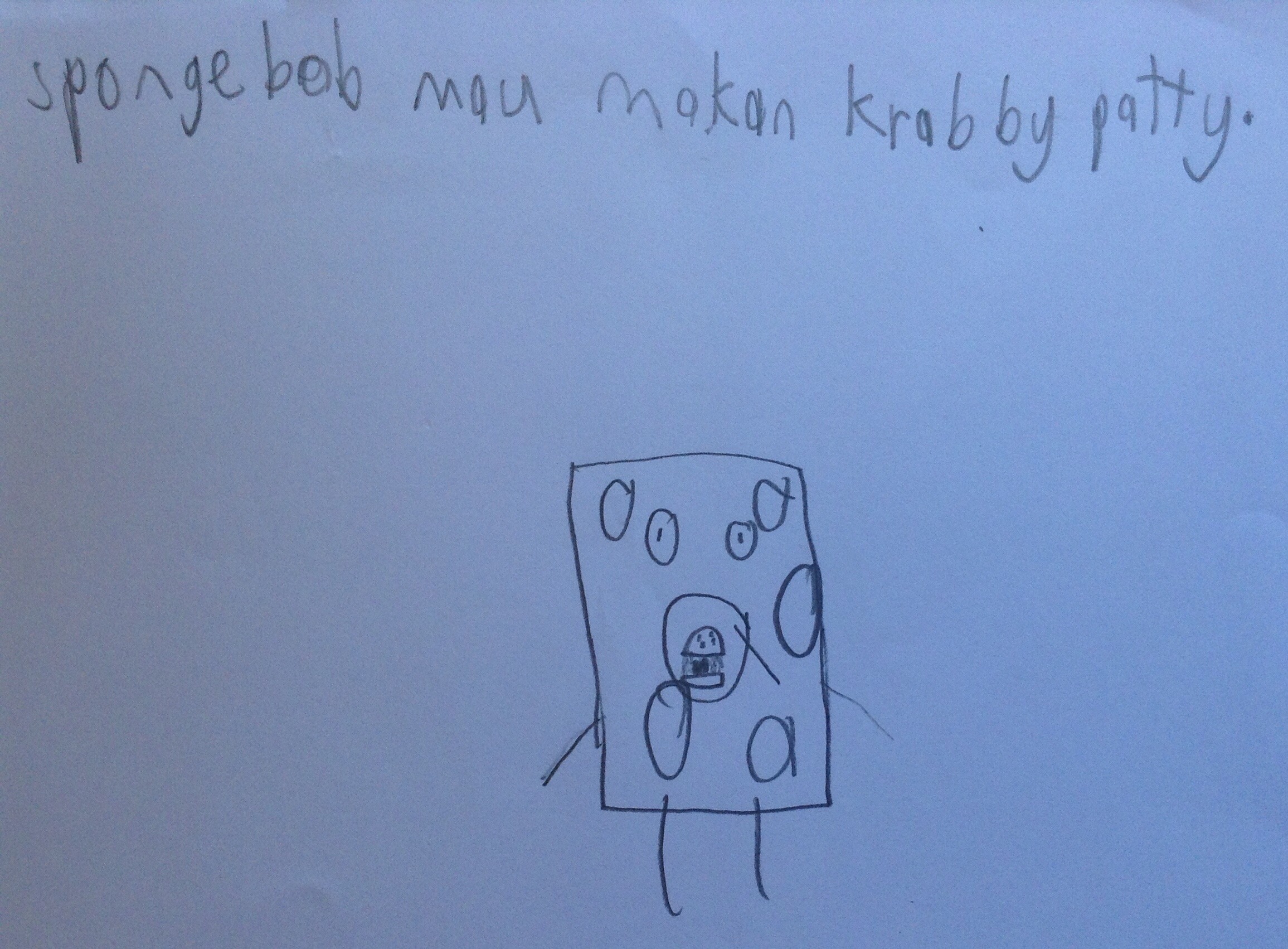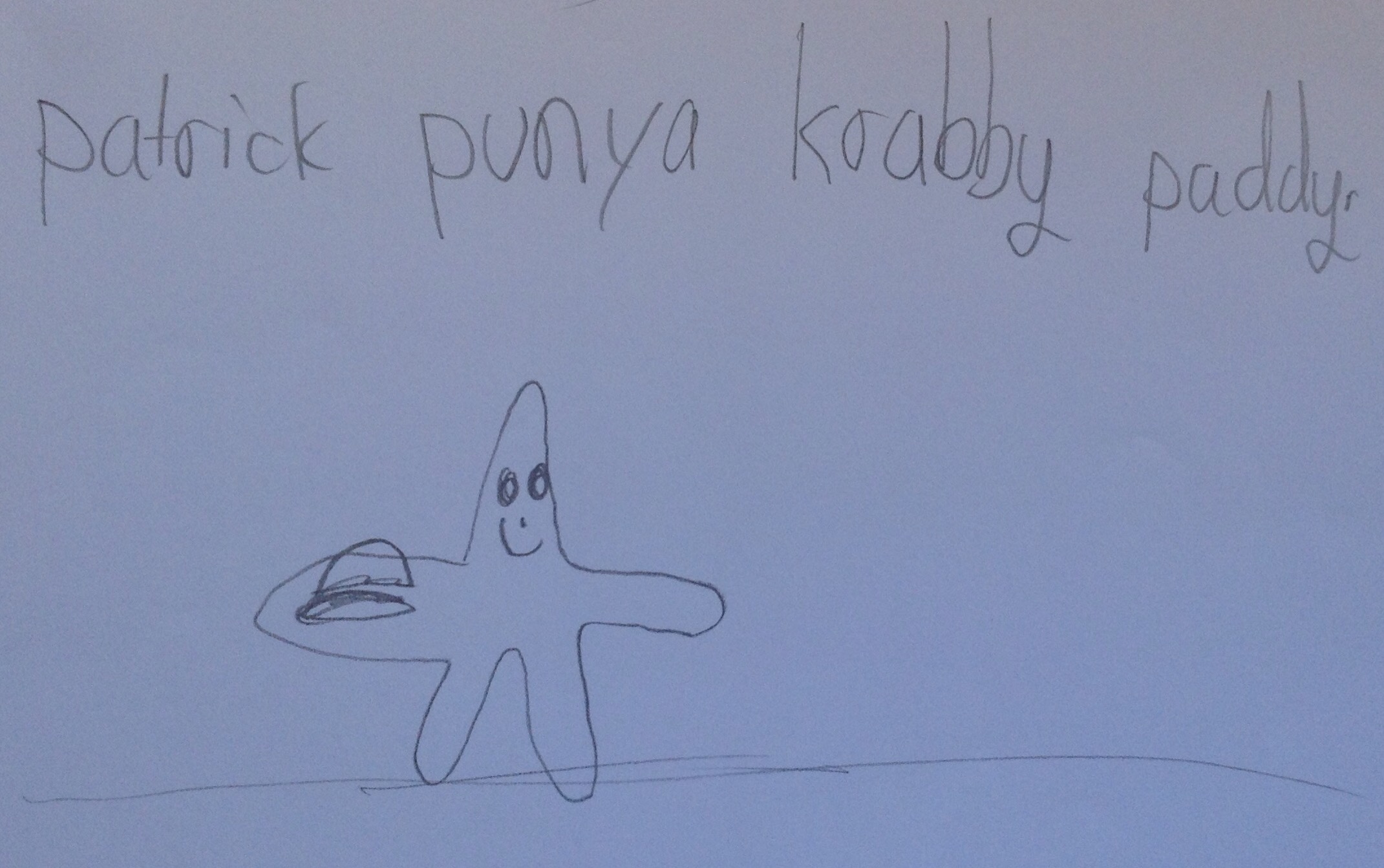 I decided to tackle the ingredients first with the thought that as soon as they were acquired, the method would be largely (although still not i+1) comprehensible. I began with a google search for images and found a large image of each ingredient. I then printed an A4 copy of each and laminated them. I didn’t label (ie write the Indonesian on) the pictures which at times was useful and other times frustrating. Probably should have though to assist with acquisition. I began by introducing this new vocabulary and encouraging students to come up with ways they could remember each. Both classes suggested remembering ‘minyak’ (oil) is easy because it is yuck (yak)!! Next students got into 6 groups (the number of trestle tables in my room). Each group was given 11 sheets of A5 paper & 11 laminated cards, each with one of the ingredient words on it. As a team, each ingredient had to illustrated, one per piece of paper. Here are just a few of them: