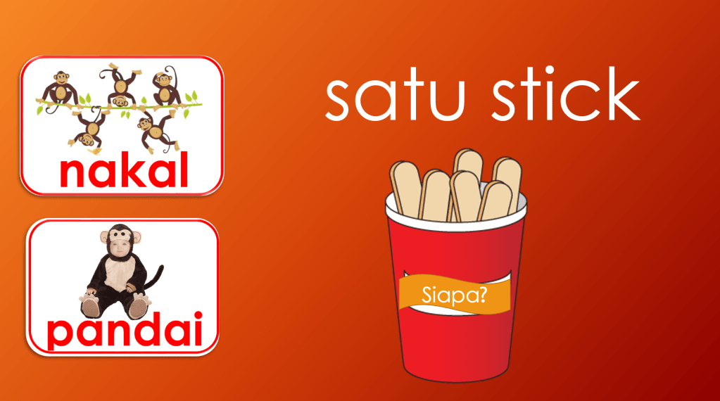 – Duck, Duck, Goose – not one I do often but still worth adding to the list. I like this this game for noun repetitions e.g. laki-laki/ perempuan, ibu/bapak etc.